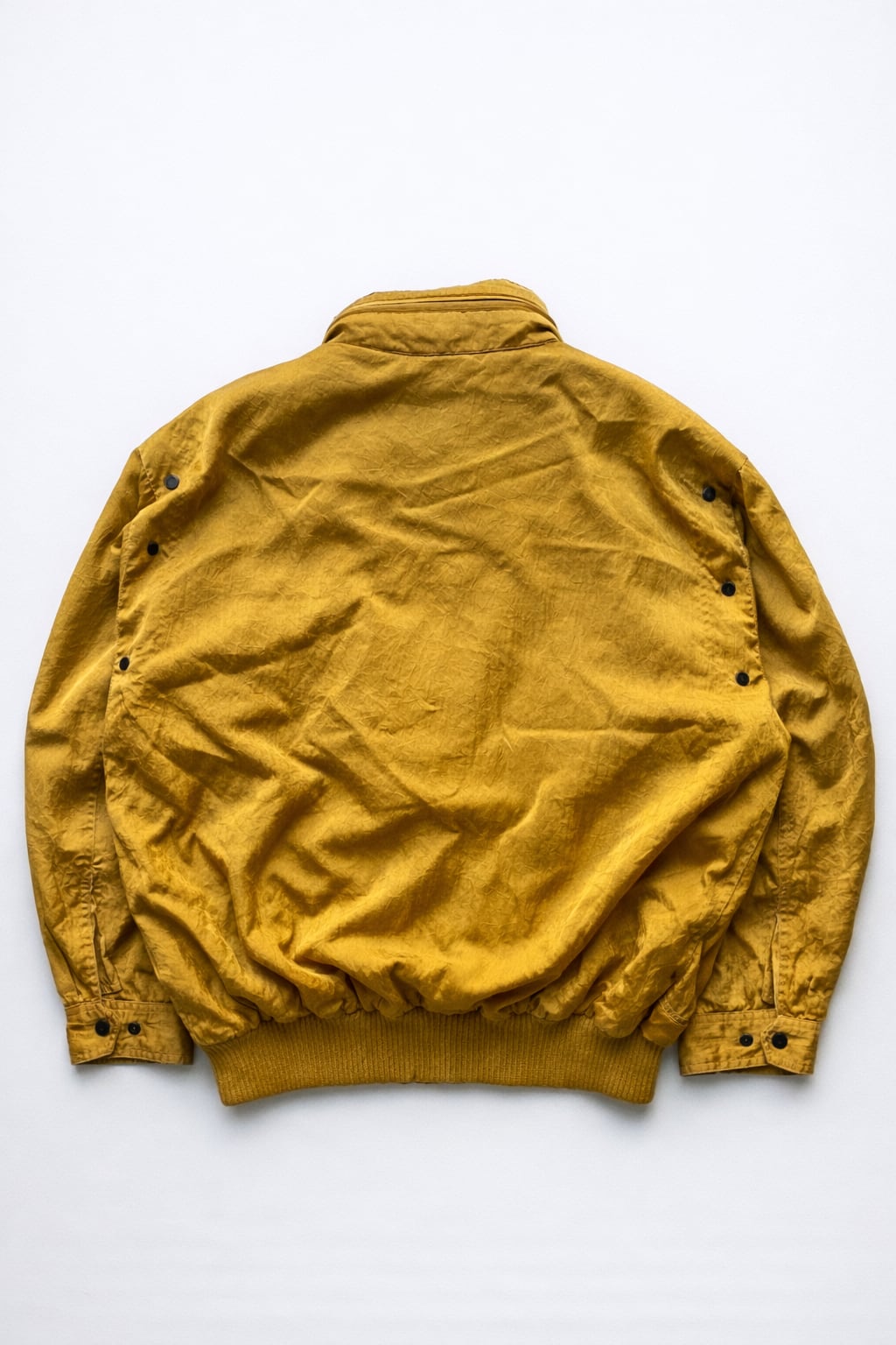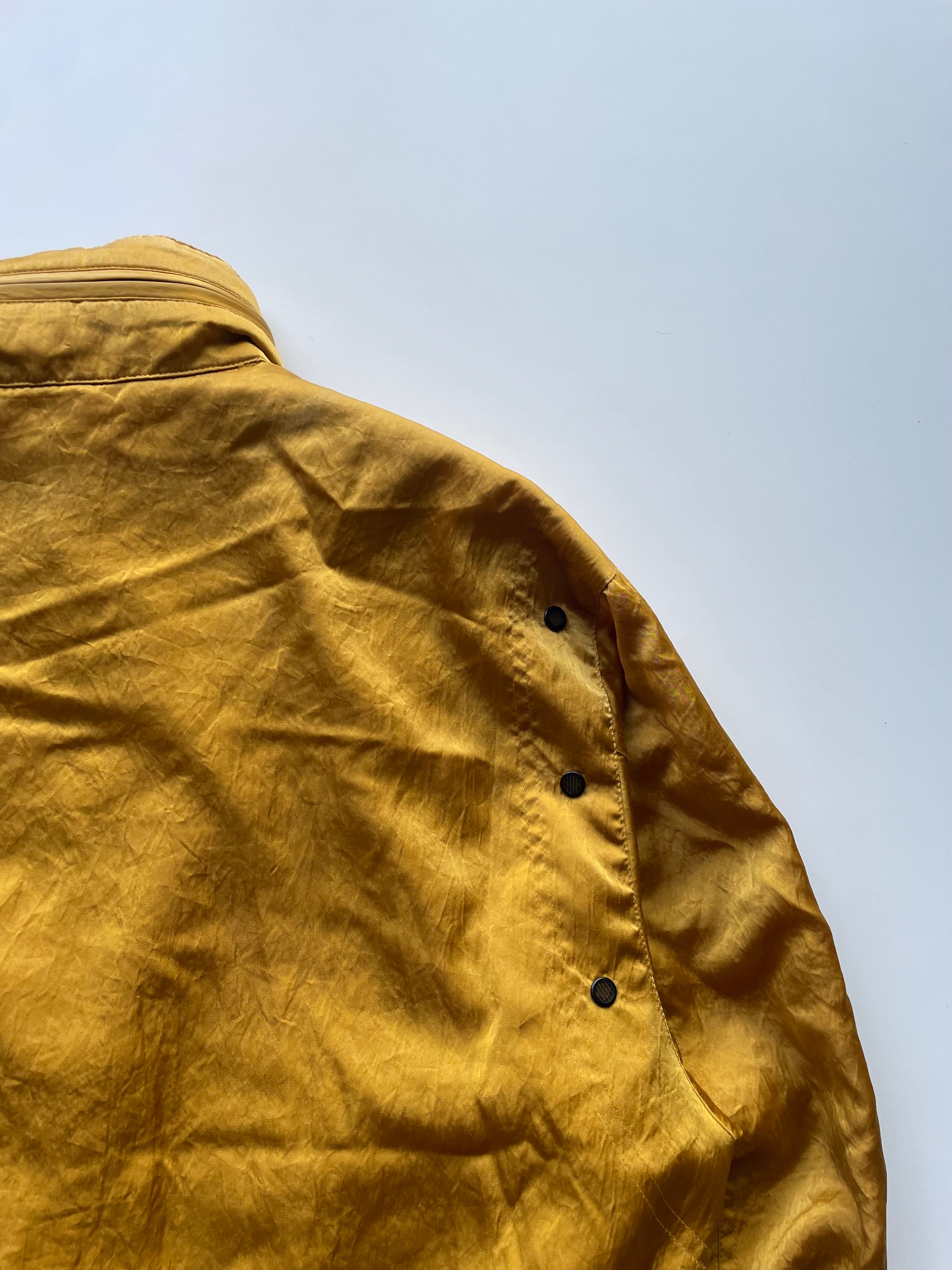 ムラ感のあるマスタード色で光沢感のあるナイロンは、C.P. Companyが得意とするガーメントダイを彷彿とさせる奥行きある色出し。