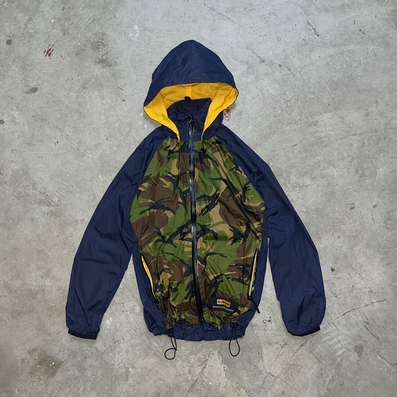 このジャケットに関しては、Snugpakでは中々目にすることが無い珍しい配色になっており、カモ、ネイビー、イエローと配色バランスが絶妙です。
