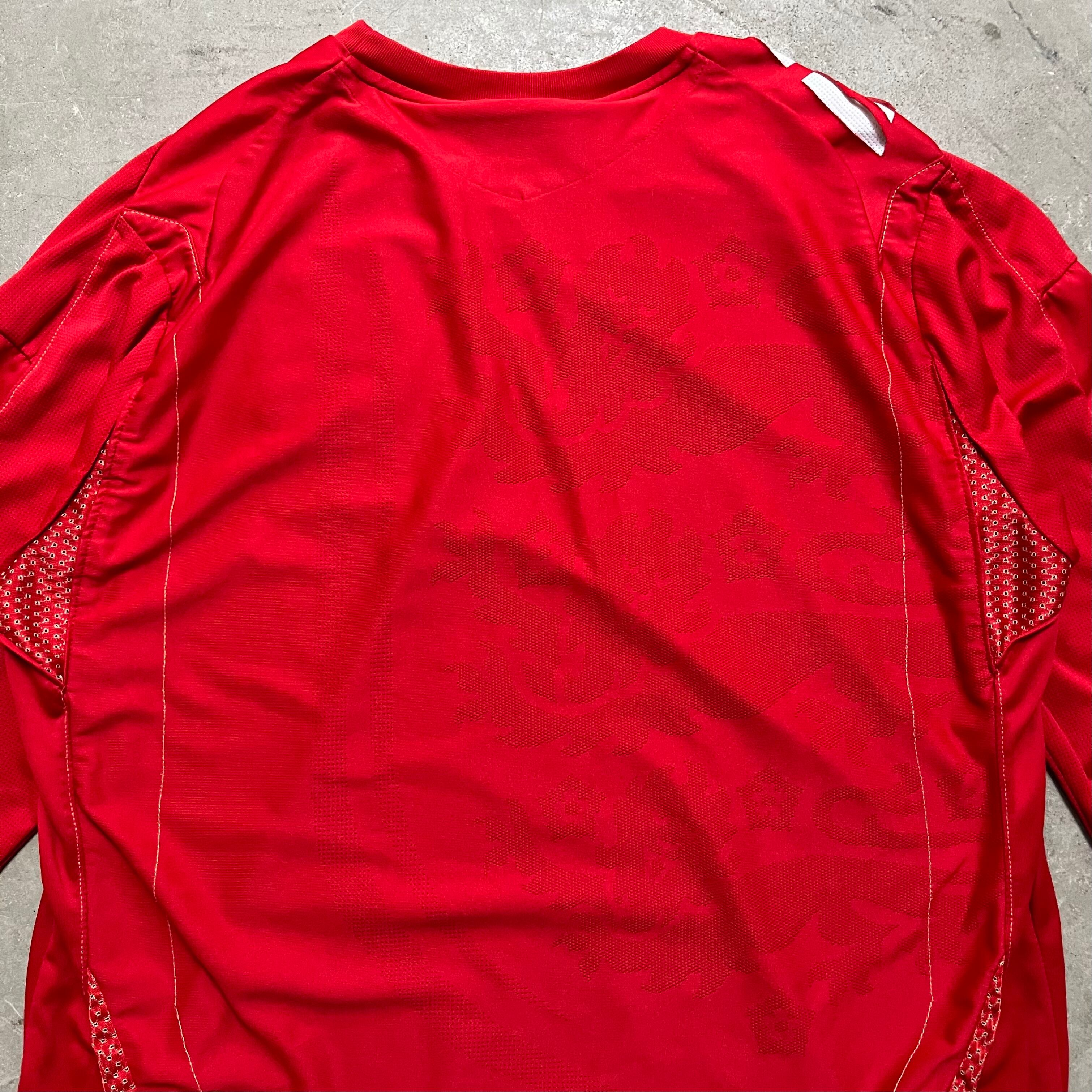 背面にスリーライオンズが薄らと入っており、イングランド代表ユニフォームの中でもトップクラスに高いデザイン性誇る一着です。
